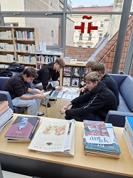 Dne 26. 9. 2025 se zúčastnili vybraní studenti francouzštiny a španělštiny našeho gymnázia Evropského dne jazyků na francouzském Institut français de Prague a na španělském Instituto Cervantes. Oba instituty nabídly našim žákům jazykové aktivity, při kterých mohli zužitkovat již své nabyté jazykové kompetence a také mohli objevit další evropský jazyk. Jelikož se jedná o dva románské jazyky, nebylo obtížné se ve druhém neznámém jazyce zorientovat. Ve španělském institutu museli studenti vypátrat zločince a zjistit důvody i průběh zločinu, ve francouzském institutu mapovali nabídku institutu a byli zasvěceni do organizace letních olympijských a paralympijských her v Paříži, do národních symbolů Francie, kterým je např. frygická čapka atd. Obě aktivity studenty zaujaly, po vyhodnocení byli naši žáci odměněni španělskou taškou s originálním designem a Francouzský institut podaroval studenty volňásky do kina Cinéma 35 a IF pasem platným 1 celý rok, se kterým si mohou vypůjčit nejen knihy a komiksy a učebnice, ale mohou si s ním přijít i zahrát na konzoli a s 3D brýlemi nebo si mohou zapůjčit sadu pétanque či zařízení na raclette. Akce se moc povedla a ve studentech zažehla zvědavost a chuť chodit pravidelně do obou institutů a vzdělávat se tak v obou jazycích nejen jazykově, ale i kulturně.