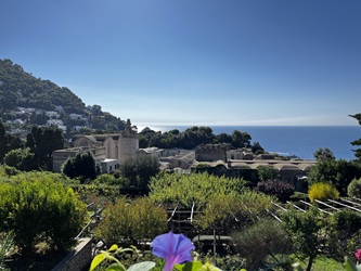 Dalším zajímavým bodem programu byla cesta na ostrov Capri. Ač se ten den muselo vstávat brzy, odměnou byl všem prosluněný a teplý den ve stínu pinií s nádhernými výhledy na skaliska, moře a okolní ostrovy. Na Capri jsme se prošli Augustovými zahradami s výhledem na slavná strmící skaliska Faraglioni, společně jsme prozkoumali zbytky Tiberiovy vily a mohli jsme se pokochat krásnými výhledy, jež se nám naskytly z Villy Lysis. Na konci dne zbylo i trochu času na krátkou koupel v moři.